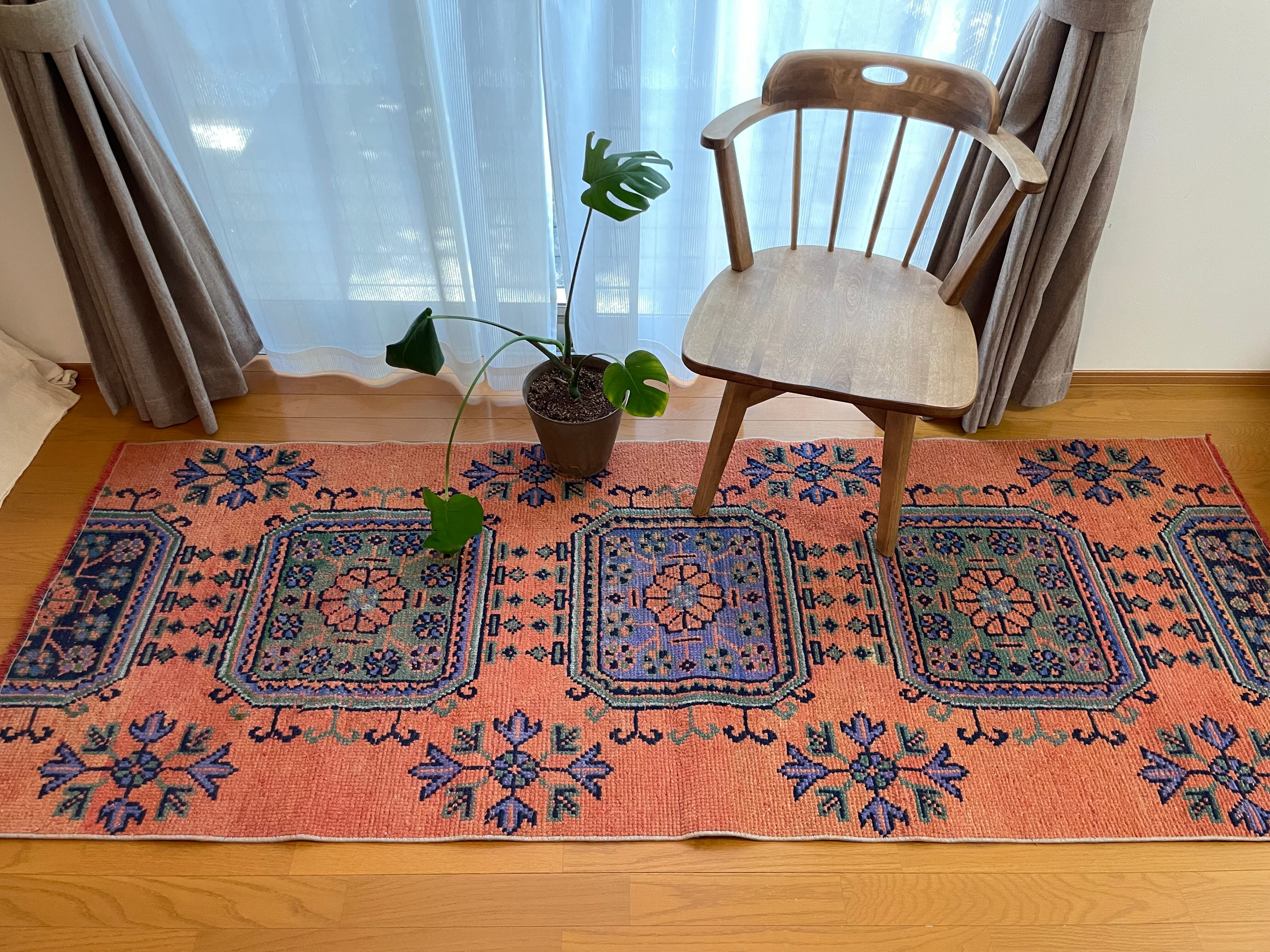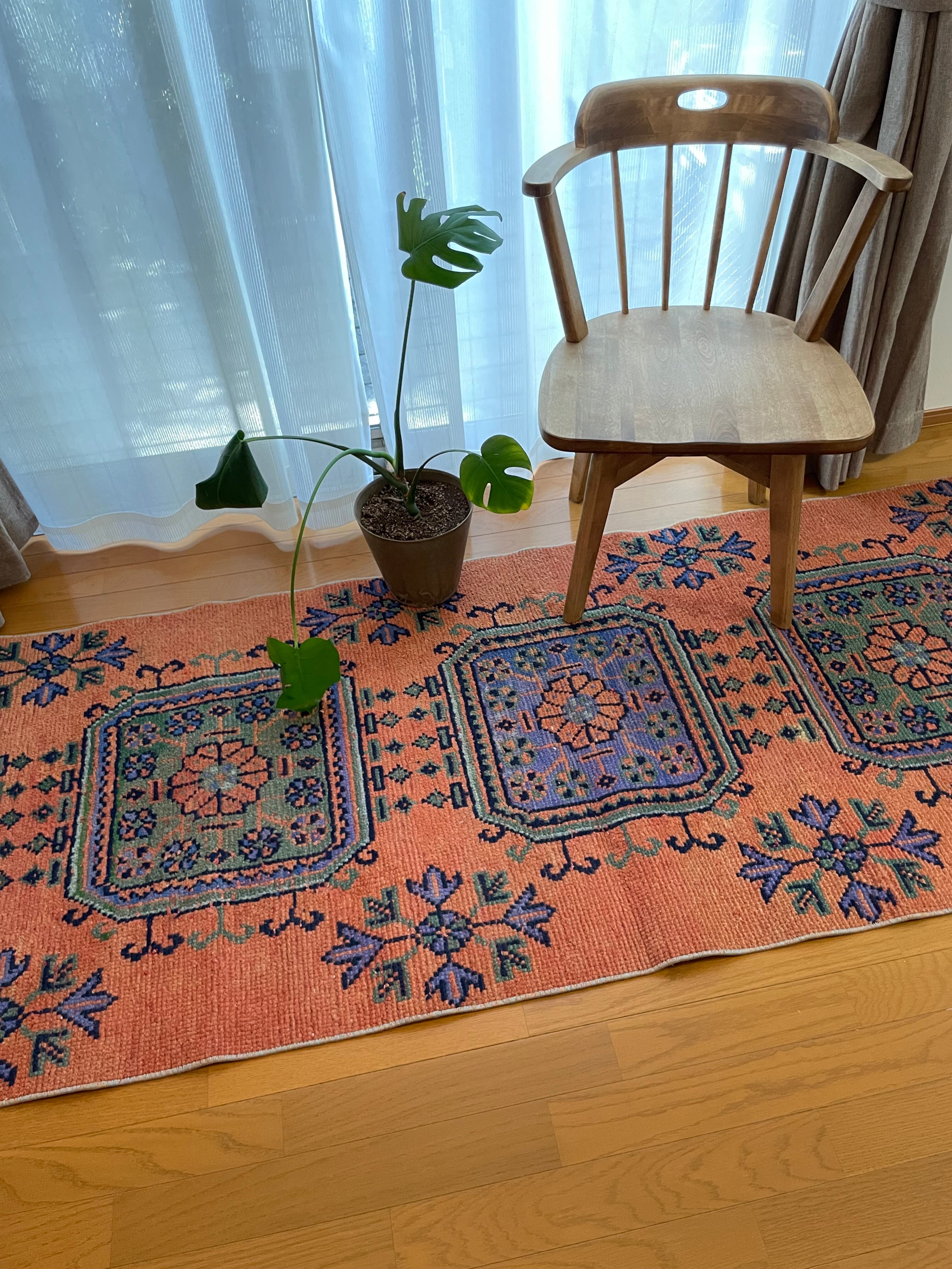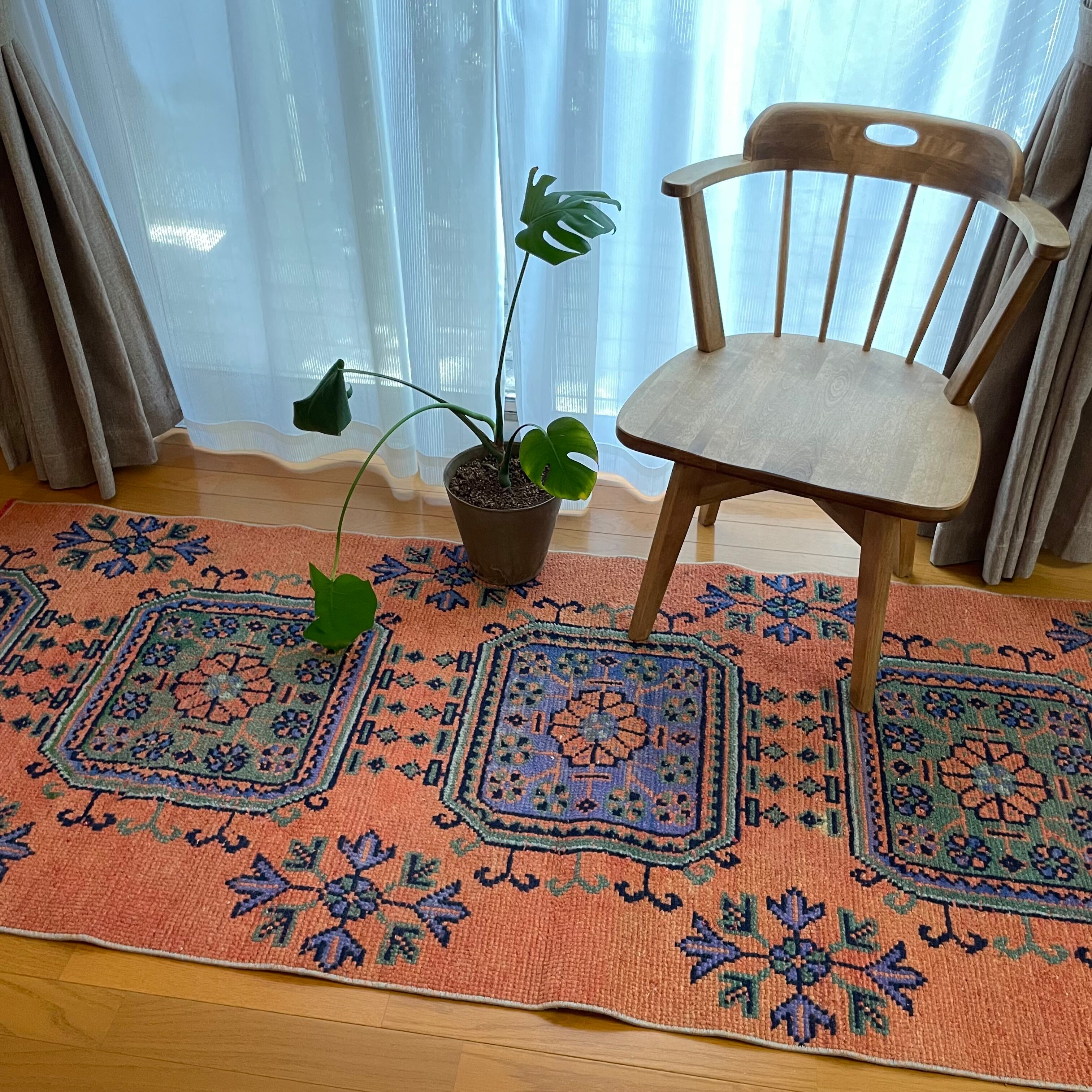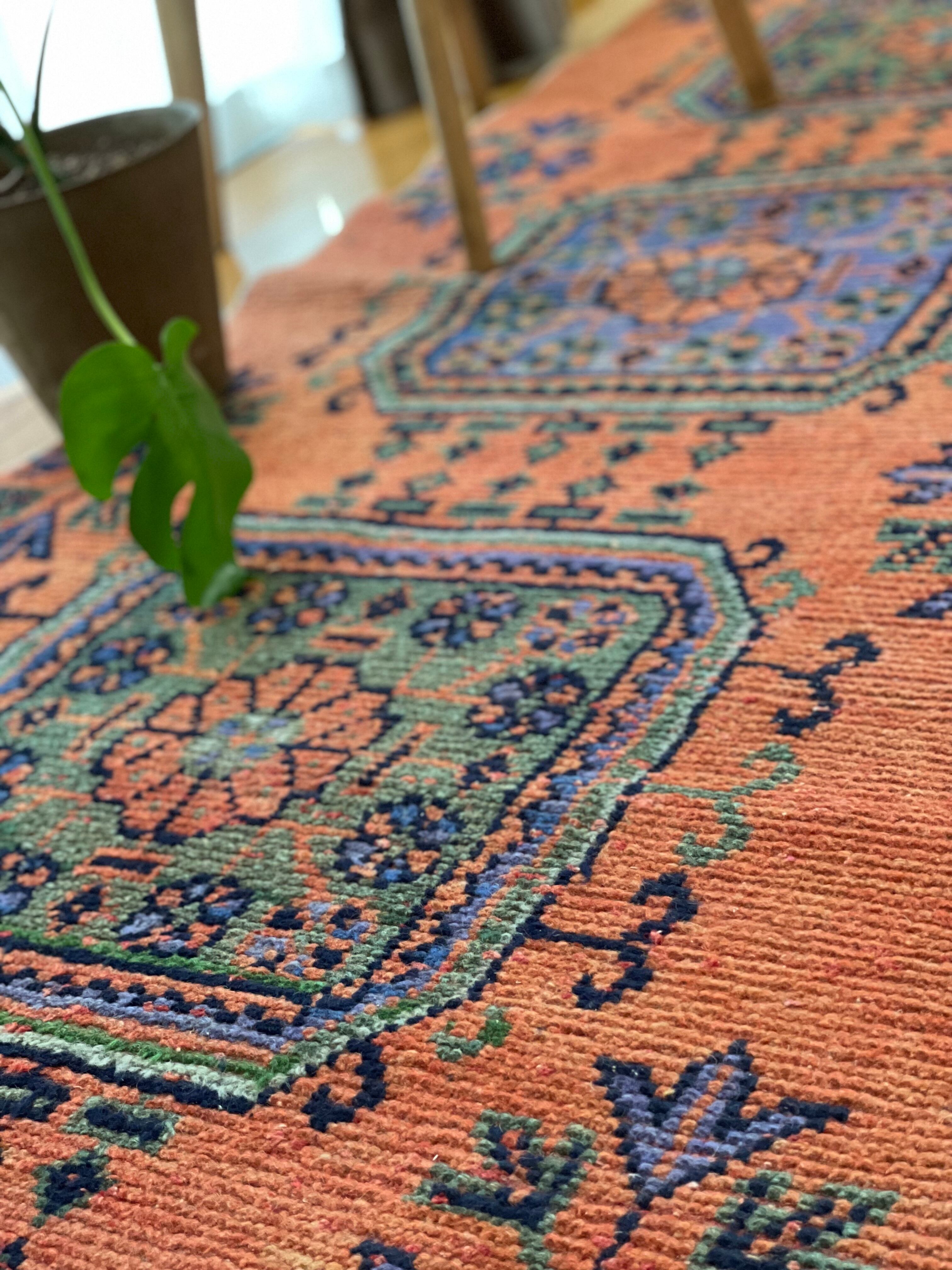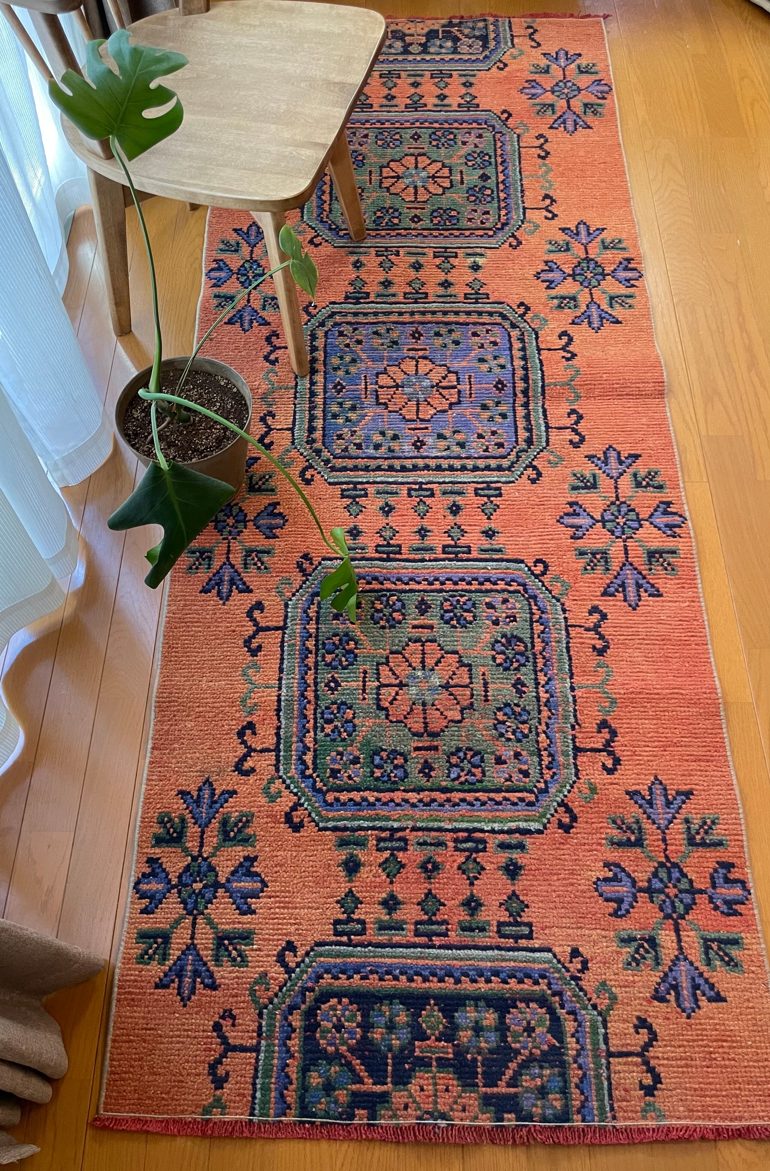 ヴィンテージランナーラグ オレンジ ボタニカル トルコラグ vintage turkish runner rug
