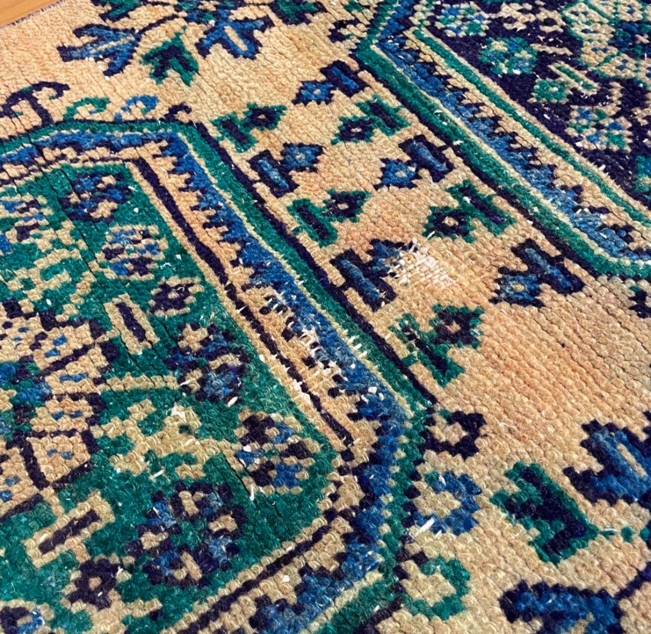 ※ヴィンテージ故の擦れや糸のほつれ、補修跡、シミなどが見られる場合があります。それもラグの個性や魅力として捉え、ご理解いただけると幸いです。