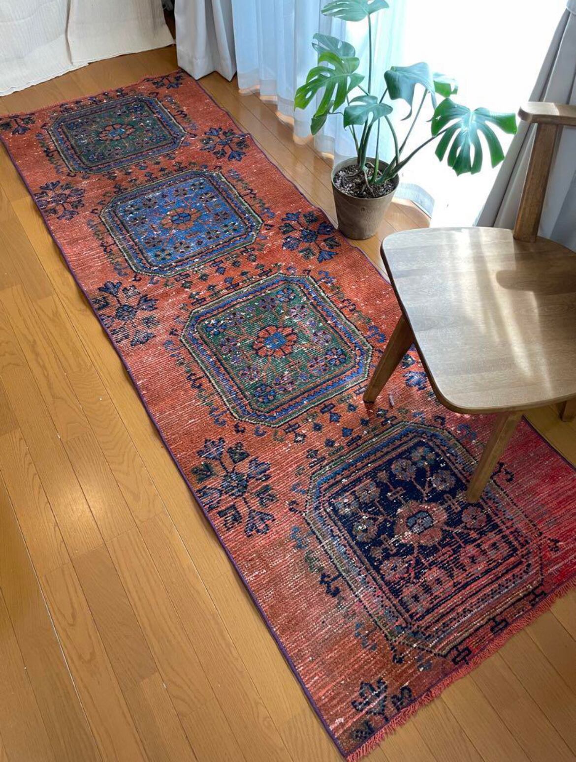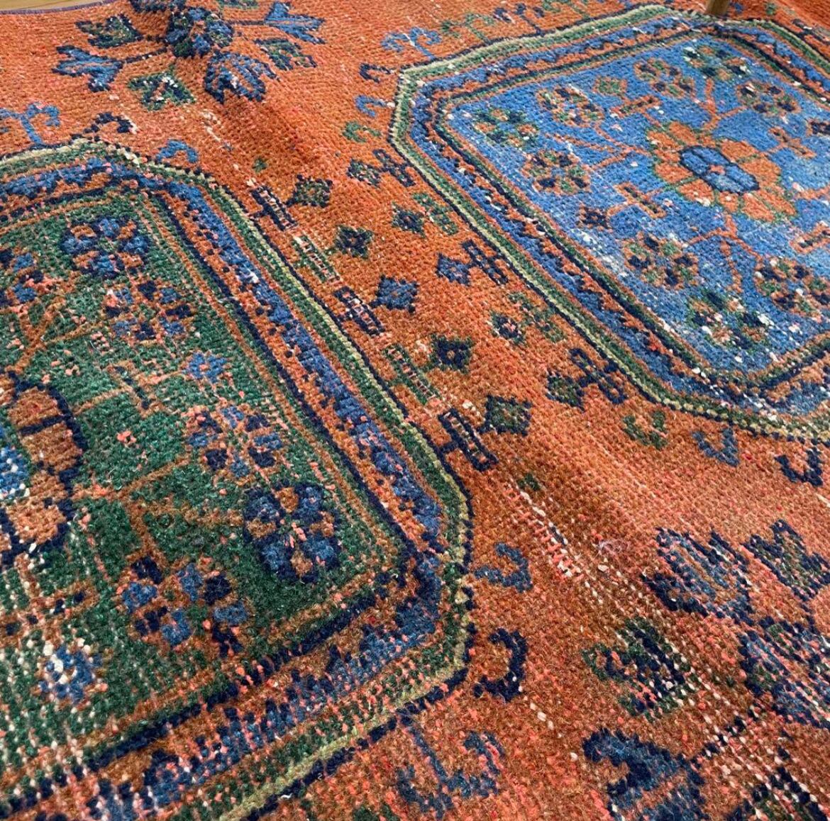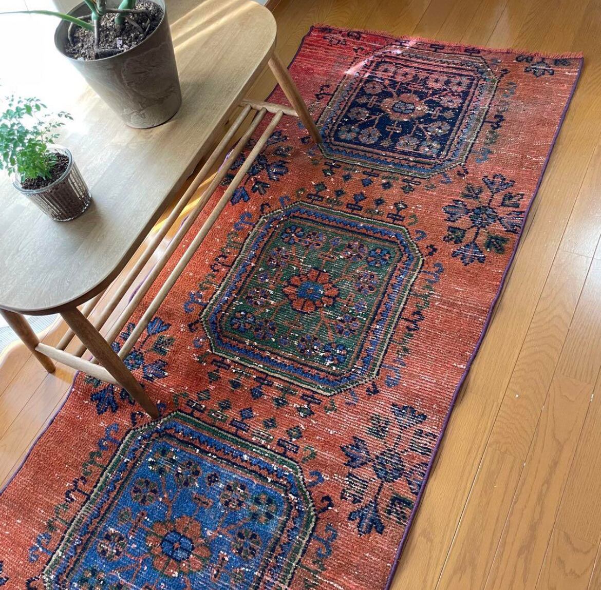 ヴィンテージランナーラグ オレンジ ボタニカル トルコラグ vintage turkish runner rug