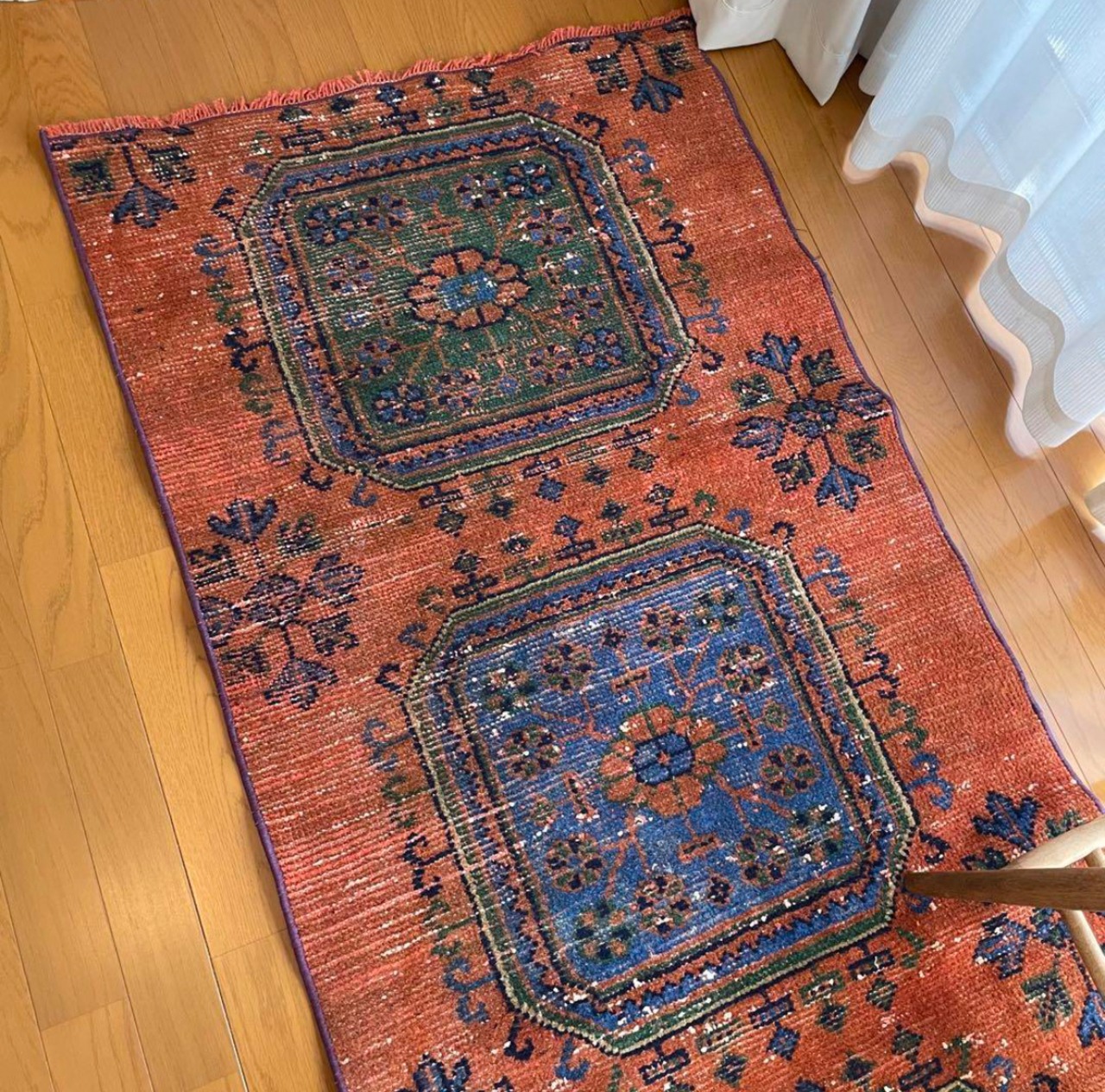 ※ヴィンテージ故の擦れや糸のほつれ、シミなどが見られる場合がありますが、それもラグの個性や魅力として捉え、ご理解いただけると幸いです。