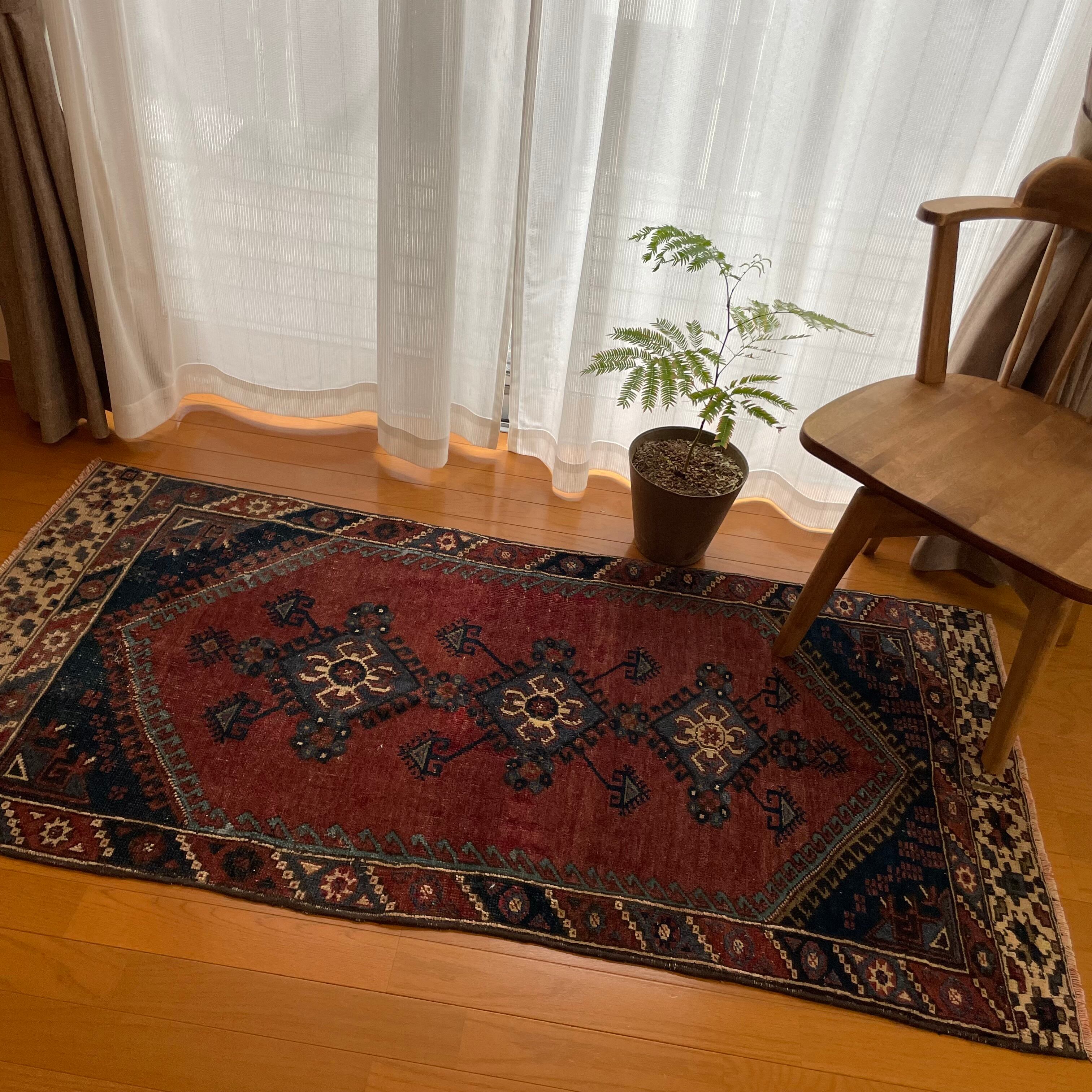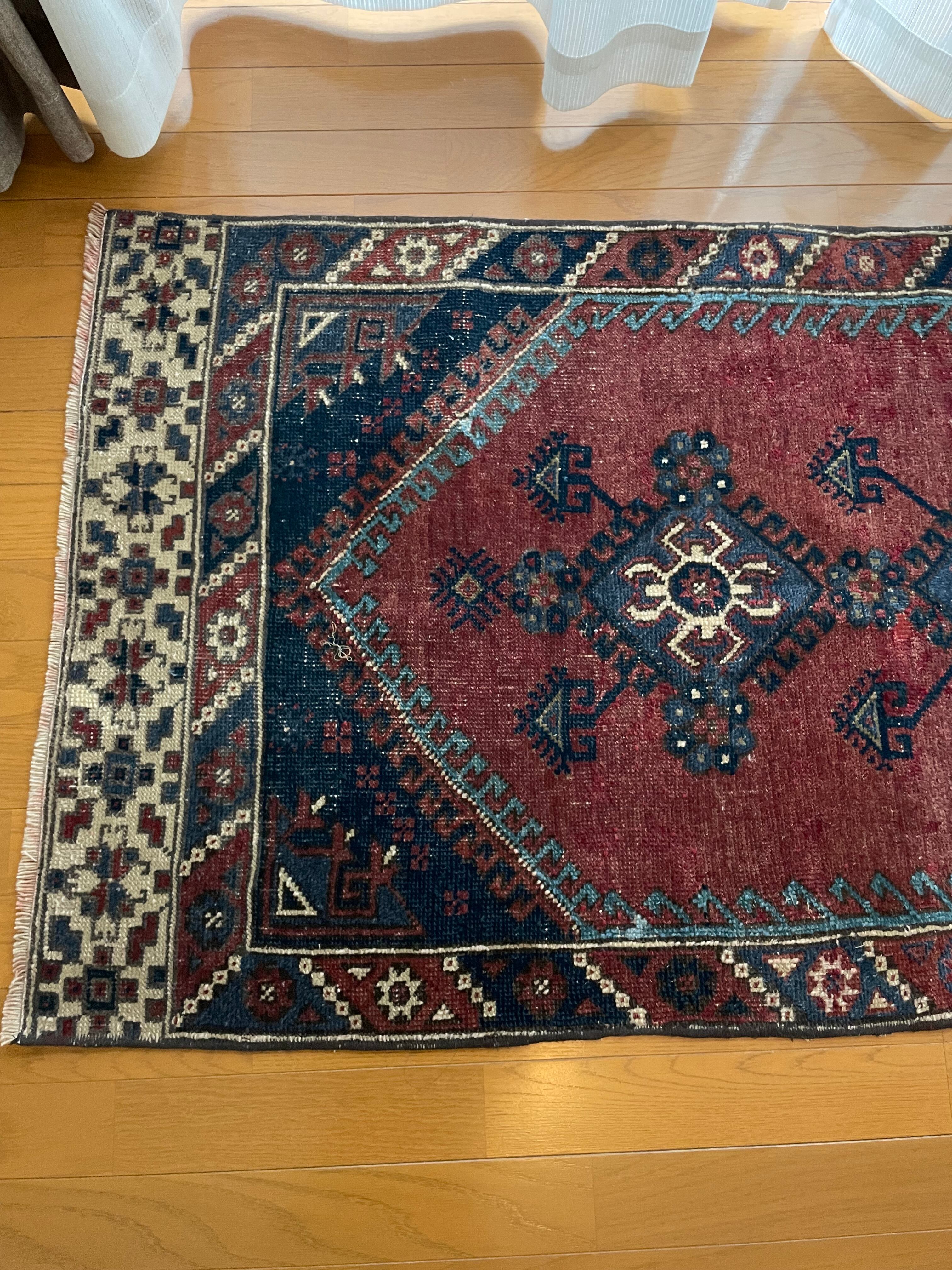 ※ヴィンテージ故の擦れや糸のほつれ、補修跡、ゆがみ、シミなどが見られる場合があります。それもラグの個性や魅力として捉え、ご理解いただけると幸いです。