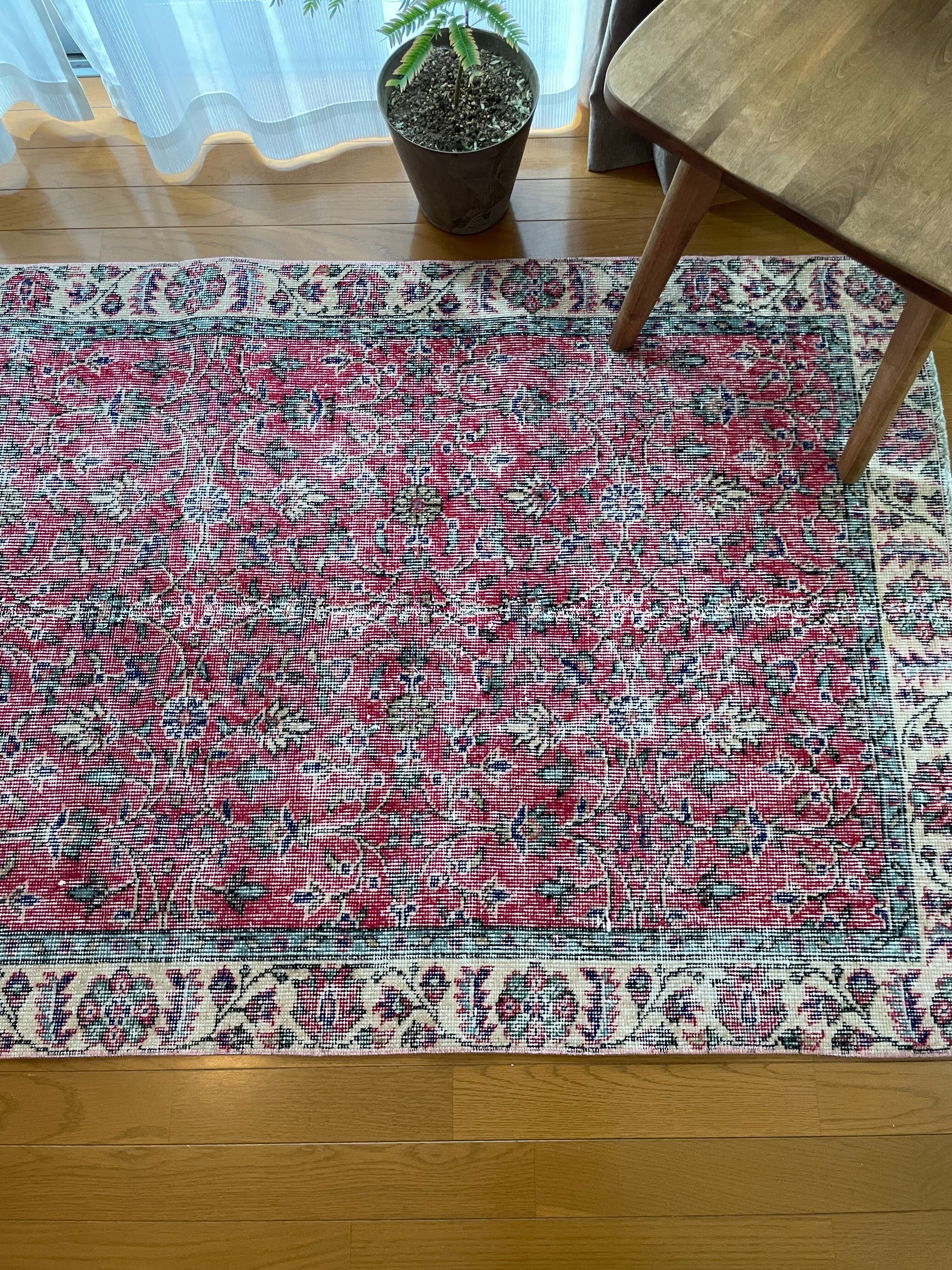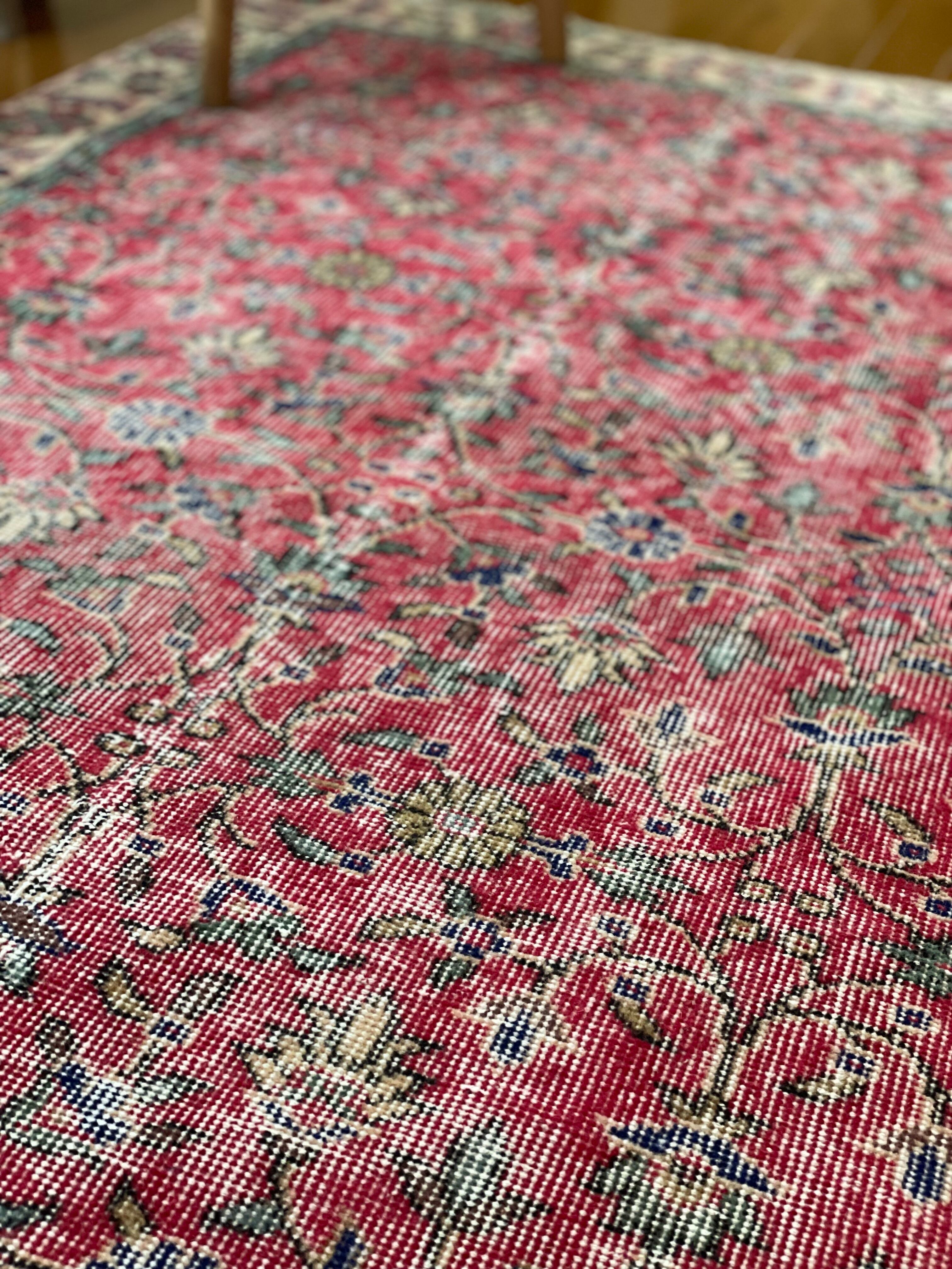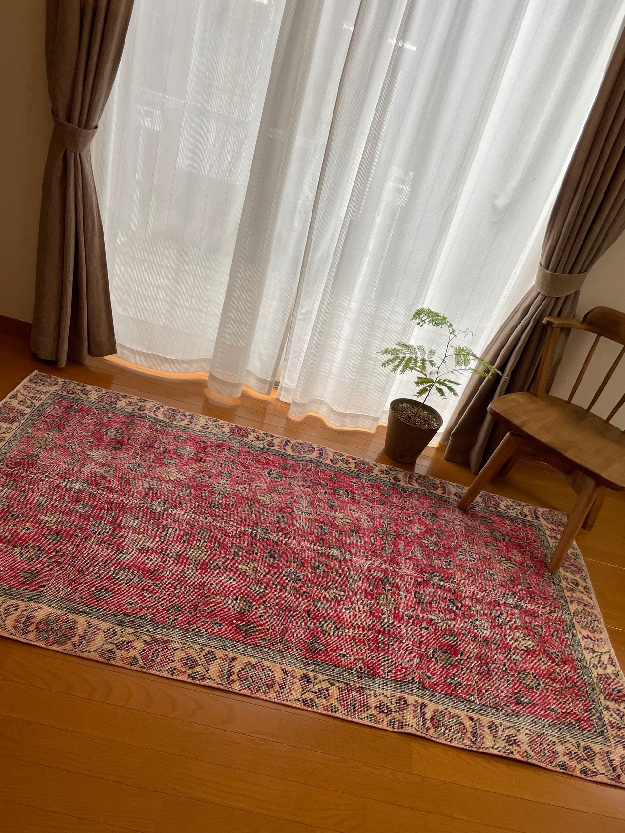 ヴィンテージランナーラグ レッド フラワー柄 トルコラグ vintage turkish runner rug