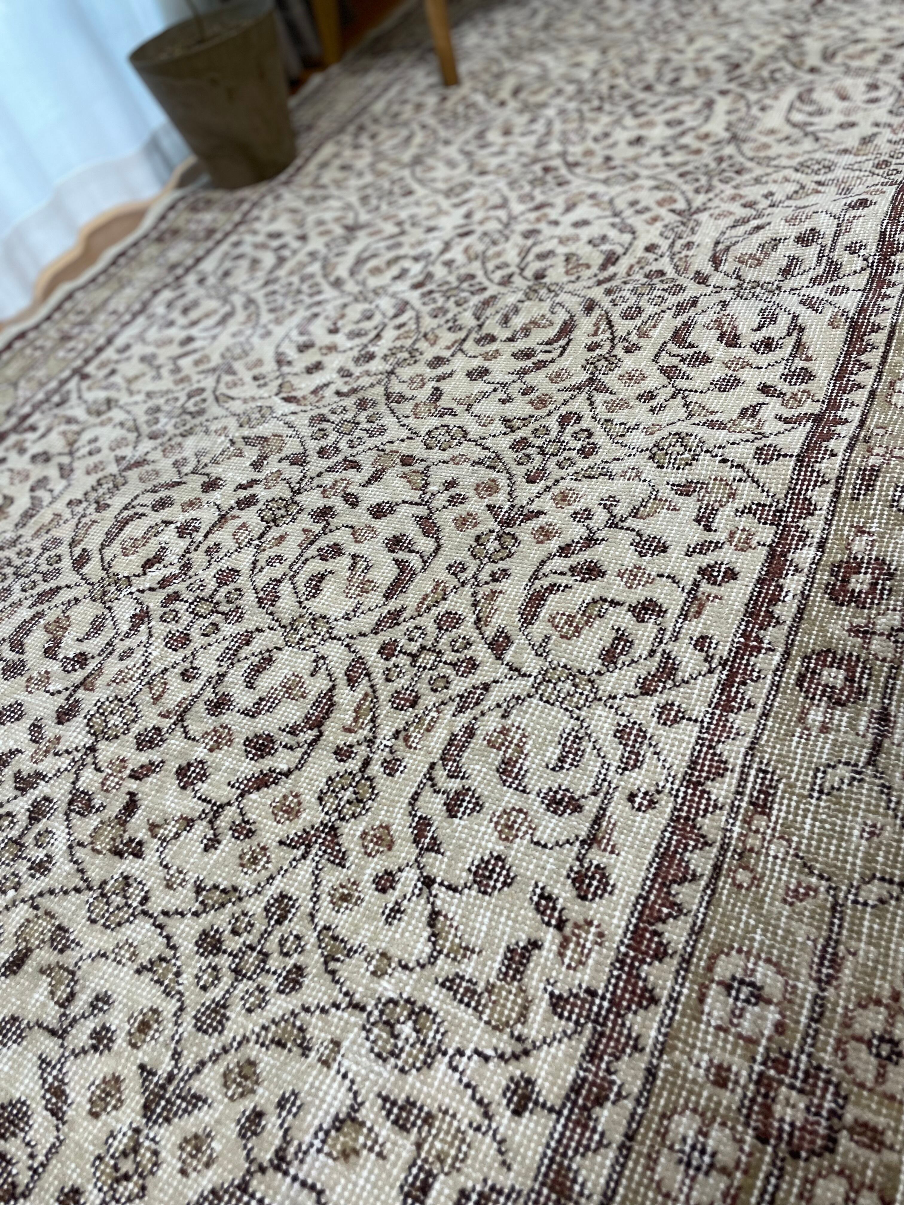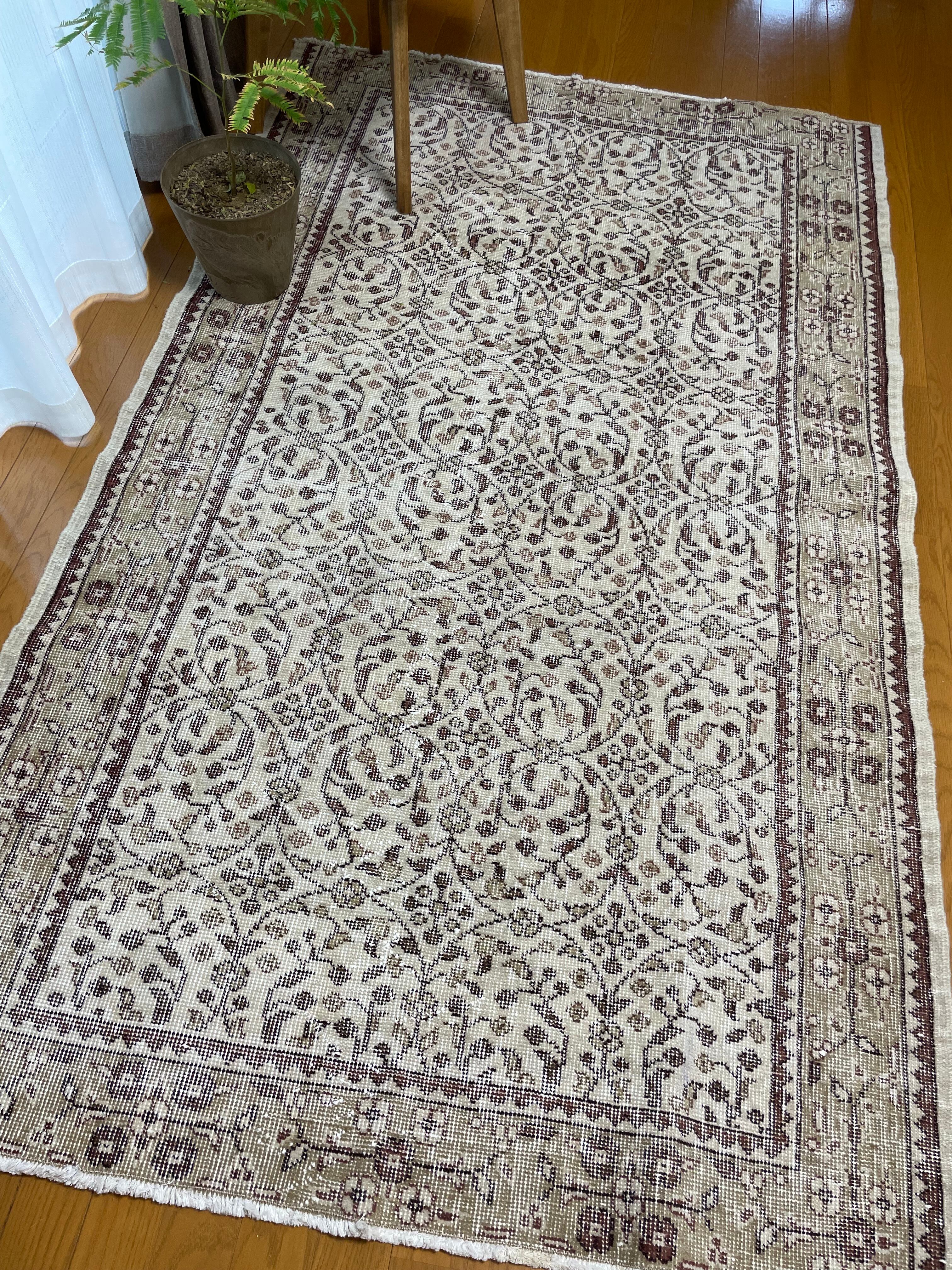 ヴィンテージランナーラグ ブラウン×ベージュ サークルフラワー トルコラグ vintage turkish runner rug
